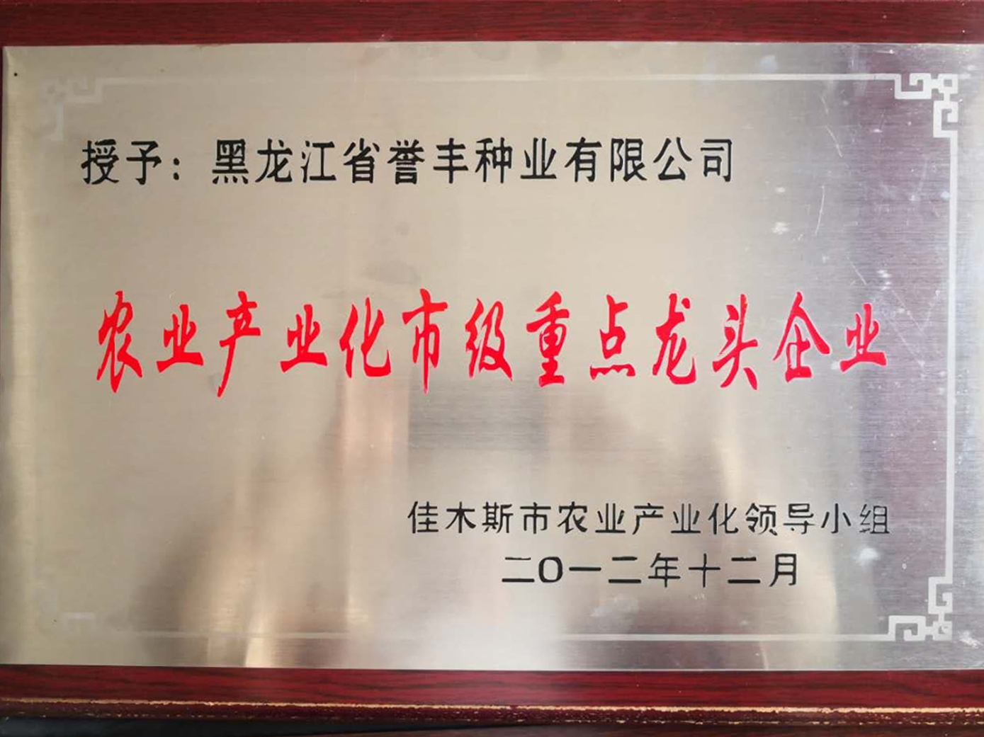 黑龍江省譽(yù)豐種業(yè)有限公司成立于2011年10月,注冊(cè)資金3000萬(wàn)元,是集科研、生產(chǎn)、營(yíng)銷(xiāo)、服務(wù)于一體的民營(yíng)高科技股份制企業(yè)。2012年被評(píng)為佳木斯市農(nóng)業(yè)產(chǎn)業(yè)化重點(diǎn)龍頭企業(yè)。